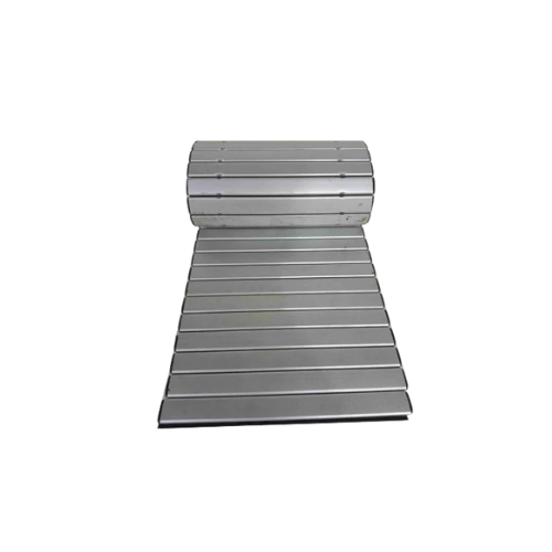 Made from interlocking aluminum strips, it offers good corrosion resistance and smooth movement, making it ideal for high-speed applications.